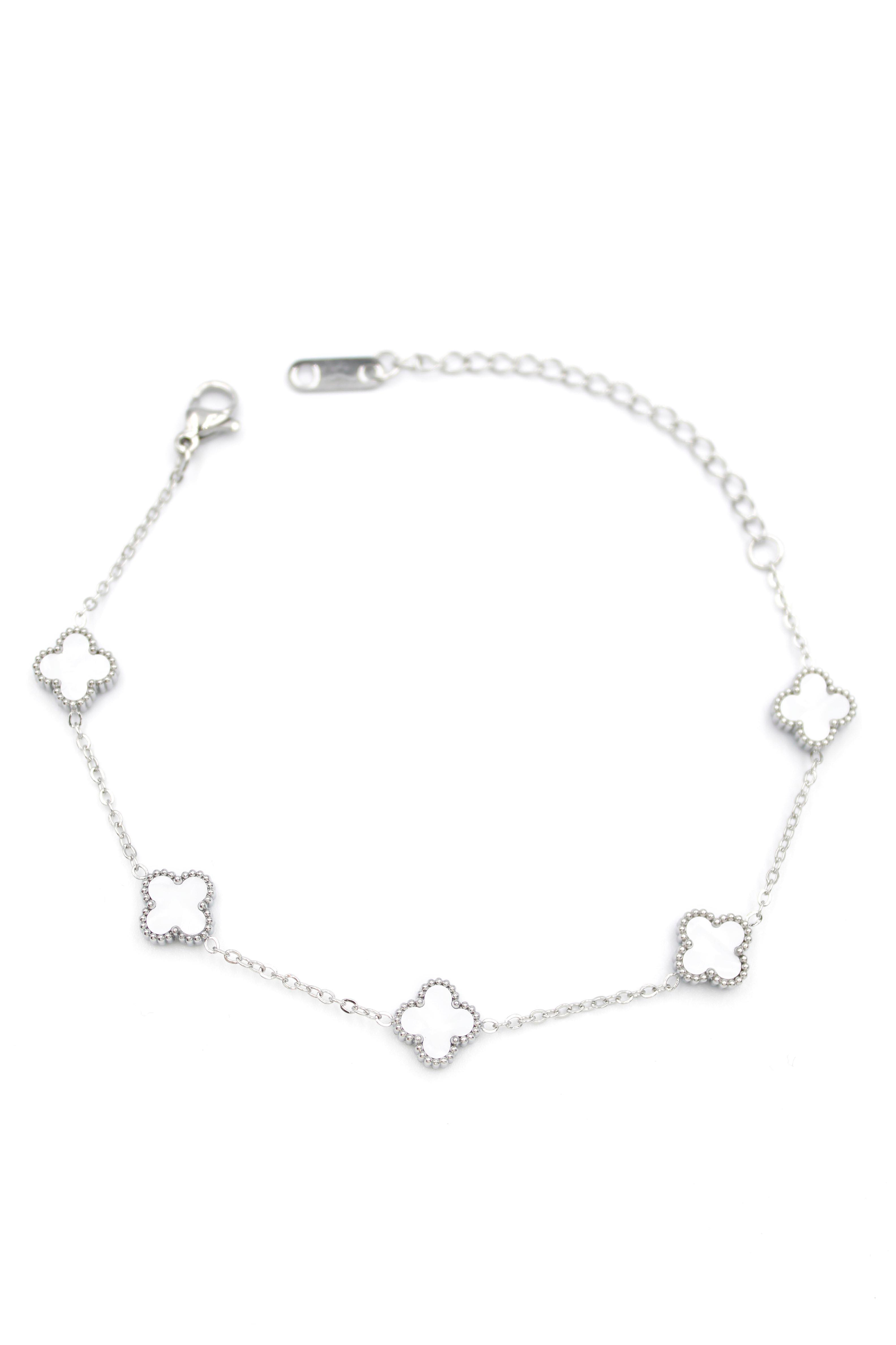 Gümüş VC Yonca Bileklik - Beyaz