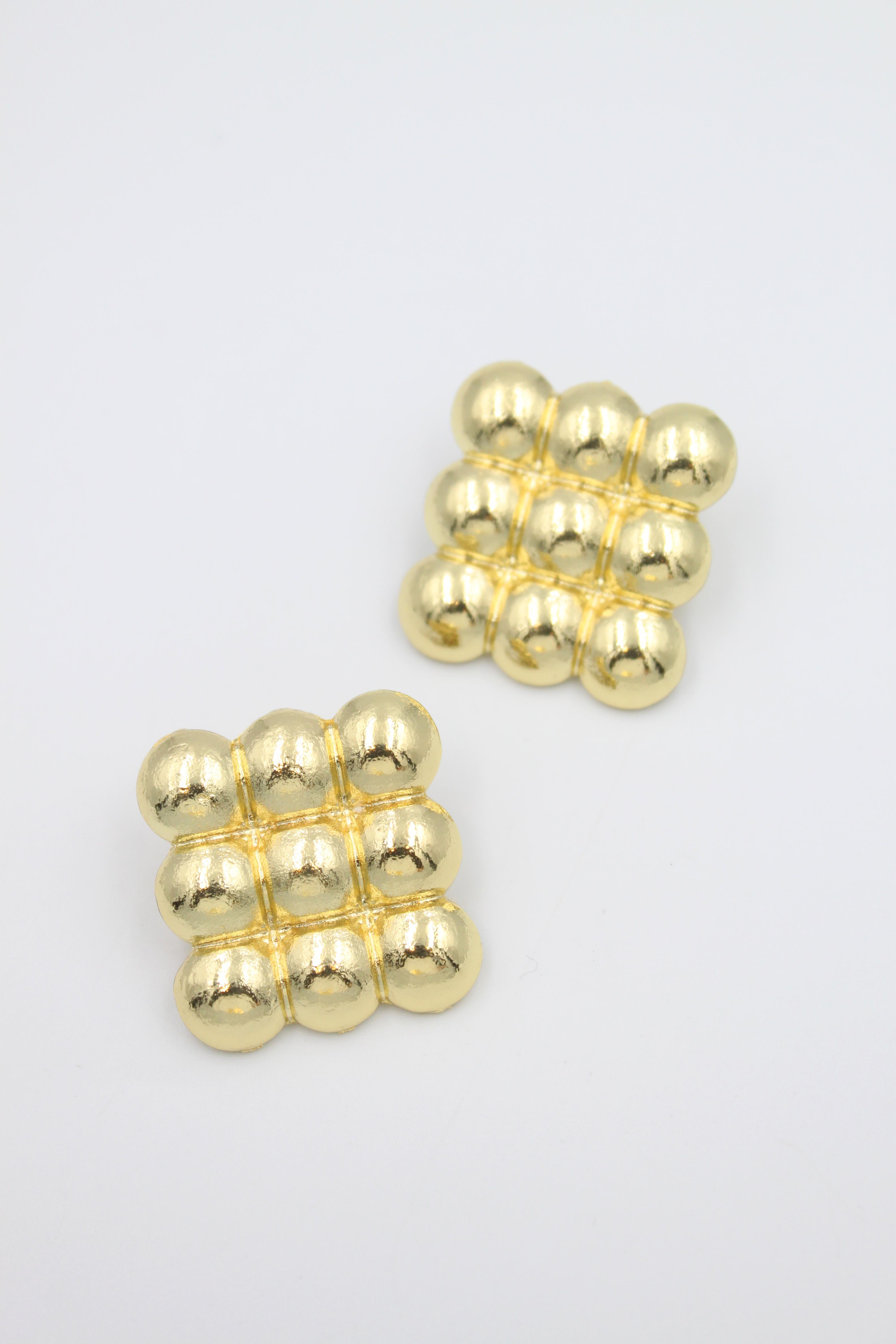 Metal Kare Küpe - Altın